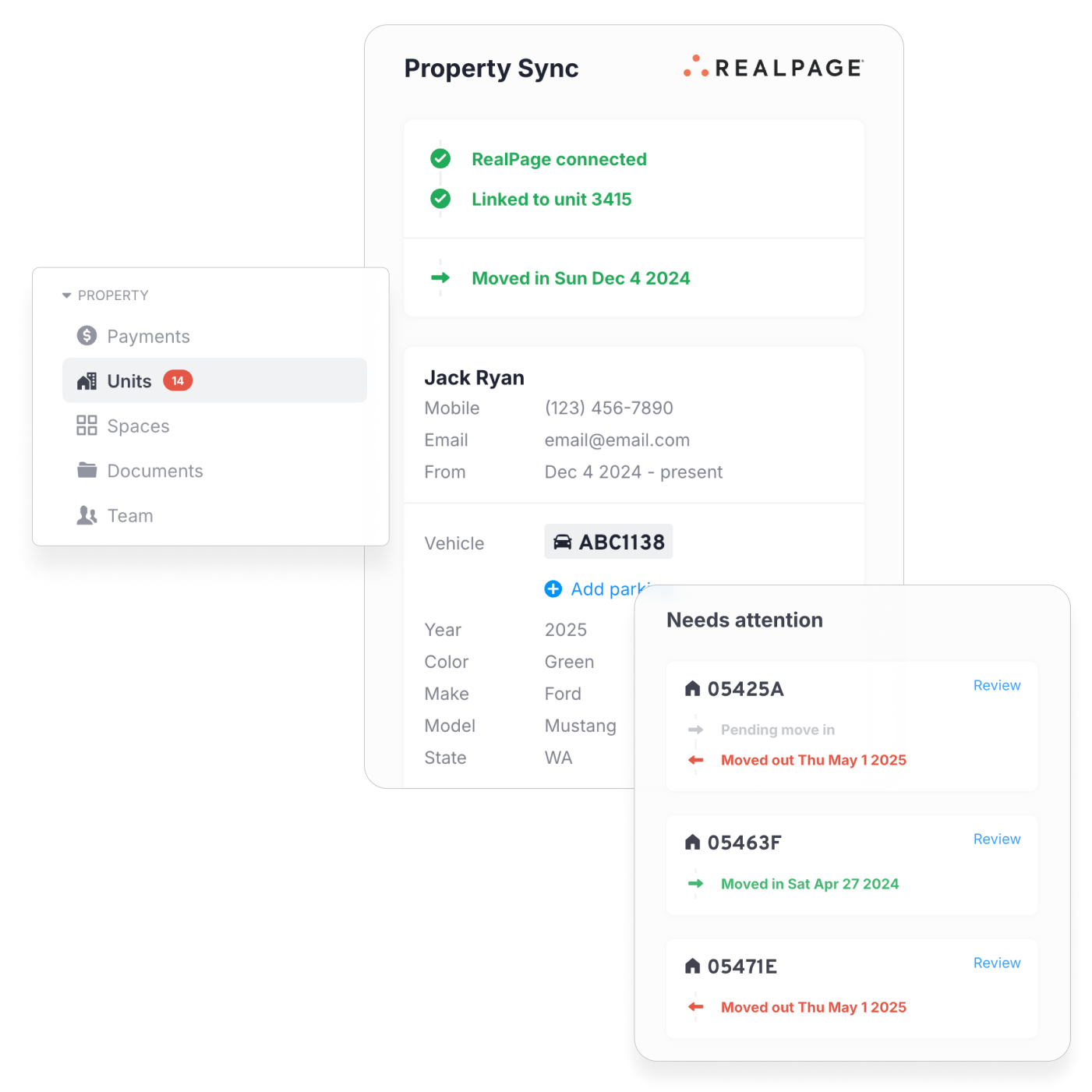 Parking Boss integrates with property management software like Entrata, RealPage, and Yardi to help ease manual data entry and automatically transfer vehicle information. Managers can move in or out units in Parking Boss with a single click, and keep a record of every unit’s parking history. When a resident moves out, their existing permits are automatically revoked. Easy!
